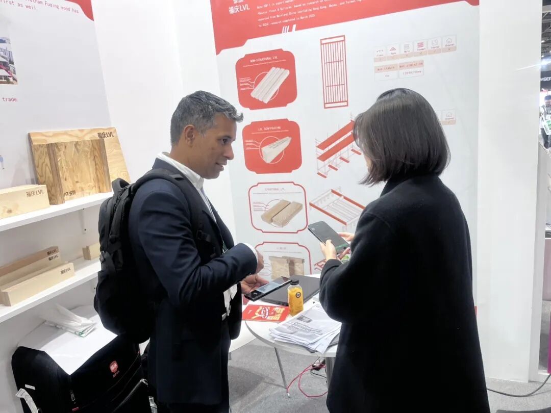At the booth, a construction contractor from Saudi Arabia highly praised Fuqing’s LVL scaffolding after reviewing product specifications, stating:“The Middle Eastern climate demands high durability and load-bearing performance. Fuqing delivers excellent strength with environmental responsibility – a perfect solution for our projects.”